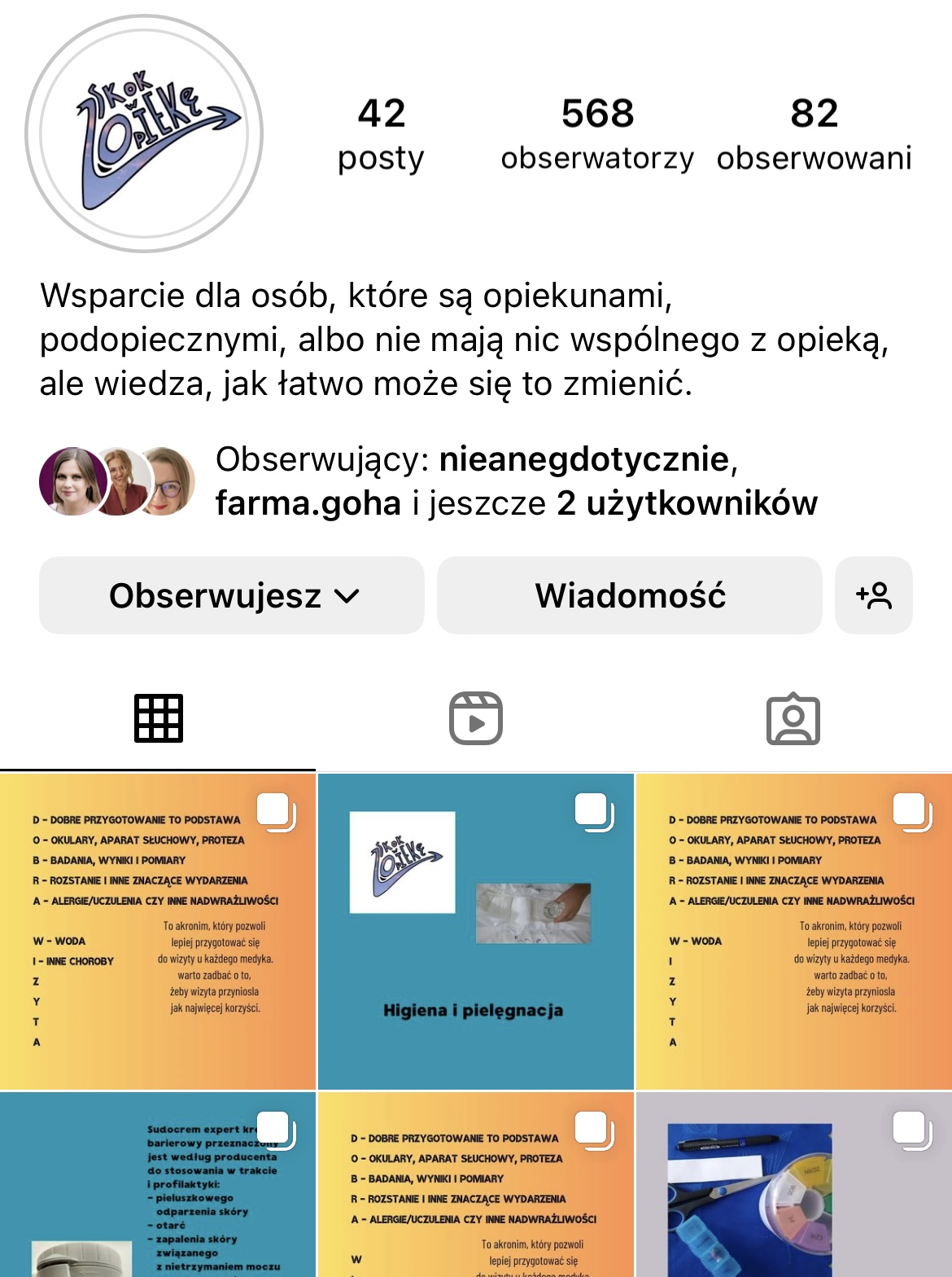 Konto „SKOK W OPIEKĘ” w moim założeniu ma stać się źródłem informacji dla opiekunów rodzinnych, zawodowych i wszystkich osób zainteresowanych. Jakich informacji? Traktuję temat szeroko, bo wiem, że z jednej strony rynek oferuje mnóstwo rozwiązań i udogodnień, dlatego, żeby dokonywać racjonalnych wyborów trzeba mieć wiedzę, której chcę dostarczać opiekunom. Z drugiej strony opieka to kosztowna branża, dlatego proponuję rozwiązania DIY- do samodzielnego wykonania, które mam nadzieję, ułatwią i usprawnią opiekę, jednocześnie poprawiając bezpieczeństwo.